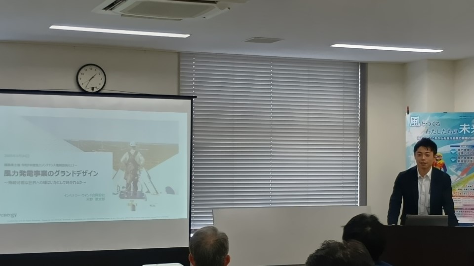 福島県商工労働部次世代産業課が主催する風力発電セミナー「風とつくるわたしたちの未来~福島の今とこれからを支える風力発電の話~」が、2025年9月~2026年1月にかけて計7回に亘って開催されており、当社開発部・技術部の社員がそれぞれ次の回において講師として登壇しました。